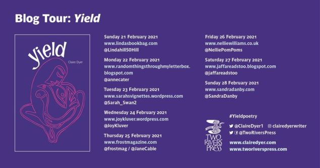 I so loved interviewing Claire Dyer and sharing my review of her novel The Last Day in a post you can read here, that I was delighted to be asked by Anne Nolan at Two Rivers Press to help launch Claire’s latest poetry collection Yield on publication day. I’m very much looking forward to the online launch for Yield later today. My enormous thanks to Anne for sending me a copy of Yield in return for an honest review.