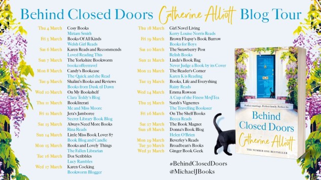 My enormous thanks to Sriya Varadharajan at Penguin Random House for inviting me to participate in this blog tour for Behind Closed Doors by Catherine Alliott. I’m delighted to share my review today.