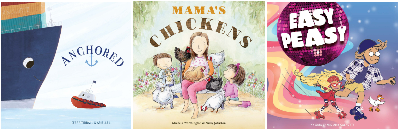 It’s a couple of years since I reviewed three children’s book from EK in a post you’ll find here. Today I’m taking a look at three more – Anchored by Debra Tidball and illustrated by Arielle Li, Mama’s Chickens by Michelle Worthington and illustrated by Nicky Johnston and Easy Peasy by Ky Garvey and illustrated by Amy Calautti.